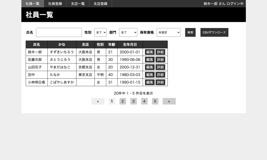 社員詳細画面を新規作成し、社員一覧からリンクさせてください。